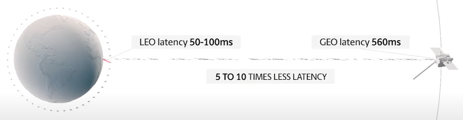 OneWeb’s 648 LEO satellites are located at an orbital altitude of 1,200km, much higher than Starlink’s constellation altitude of 500 to 600km, giving it geographic reach benefits.